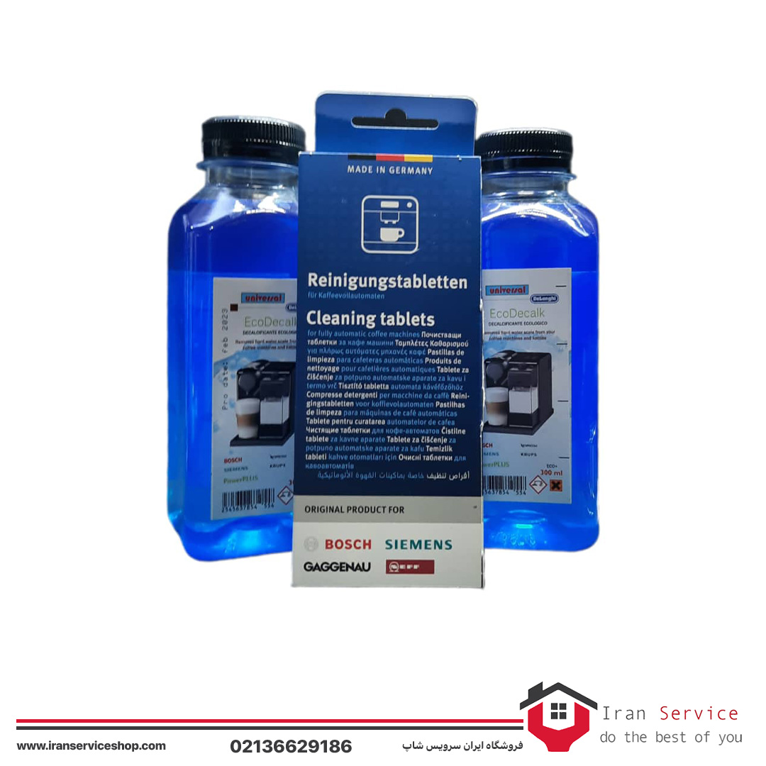 قرص کلین عمل تمیزکاری قسمت دم کن قهوه ساز را برای شما انجام خواهد داد و محلول یونیورسال برای ریختن در مخزن آب بوده و عملیات دیسکیل و کالک قهوه ساز اتوماتیک را برای شما انجام خواهد داد.